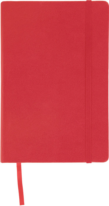 Cartón recubierto en poliuretano. 21 x 14 x 1,5 cm. Tamaño similar a A5. 80 páginas rayadas. Separador de hojas en tela. Cierre con banda elástica. Bolsillo interior en la parte trasera de la libreta.